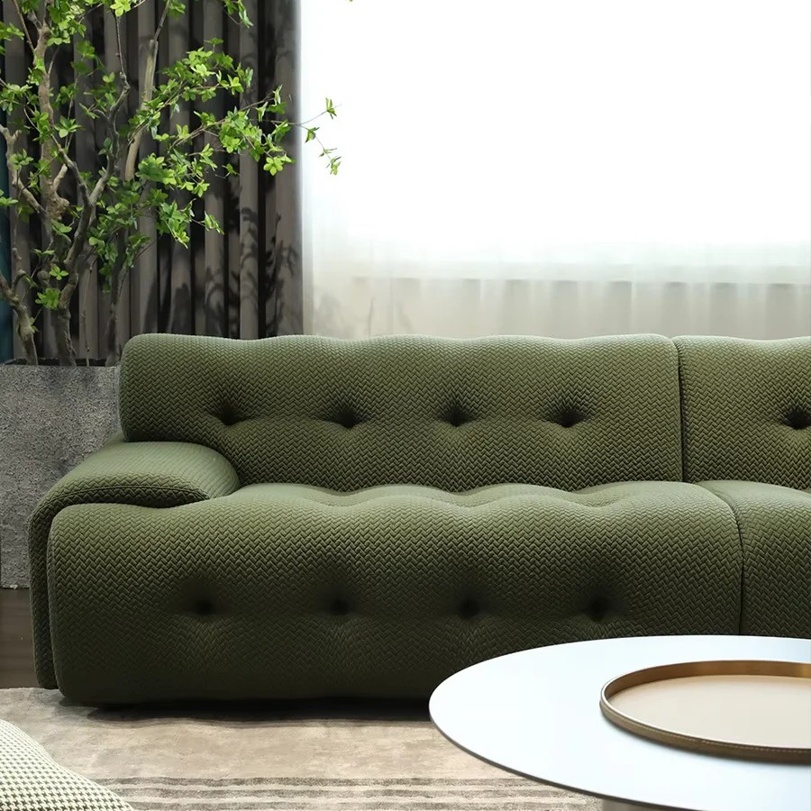 Découvrez l’élégance intemporelle de notre canapé vert, un véritable chef-d’œuvre de design. Ses formes délicates et ses boutons raffinés ajoutent une touche de sophistication à votre espace, tout en offrant un confort inégalé. Ce canapé n’est pas seulement un meuble, c’est une déclaration de style qui transformera votre salon en un havre de paix luxueux. Offrez-vous le plaisir de vous détendre dans un cadre chic et accueillant.